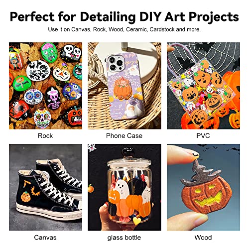• 🎨 [32 Vibrant Colors Acrylic Paint Pens] Come with 31 bright and vibrant colors and a white one, ideal for making Crafts for Adults. A perfect choice to design your scrapbook, bullet journal, planner, rocks painting, Christmas card, birthday gifts, greeting card, halloween decorations, or decorating everyday household stuff.